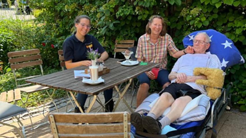 Wir waren beeindruckt, mit welcher Liebe und Fürsorge Dieters Ehefrau ihn begleitet, ihm immer zur Seite steht und sich dennoch selbst nicht vergisst. So ging für Sonja und mich ein schöner, warmer Sommertag mit wunderschönem Ausblick vom Pflegeheim aus auf den Lütjensee zu Ende.
